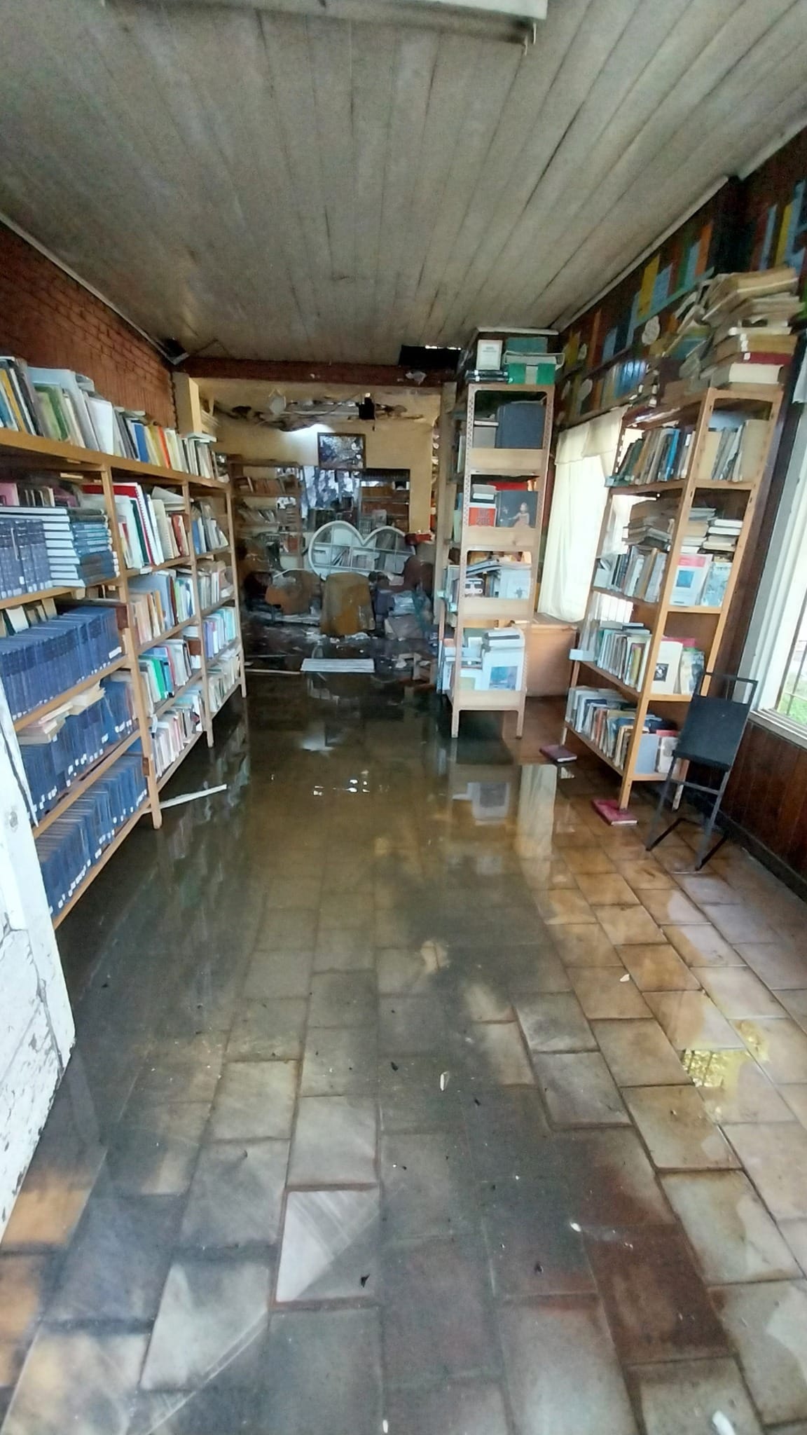 La preocupación principal gira en torno al acervo de la institución: la biblioteca resguardaba unos 16.000 ejemplares. Aunque todavía no se pudo realizar un inventario preciso para cuantificar las pérdidas, las fotos muestran estanterías cubiertas de escombros y sectores donde el agua y el fuego impactaron directamente sobre los libros.