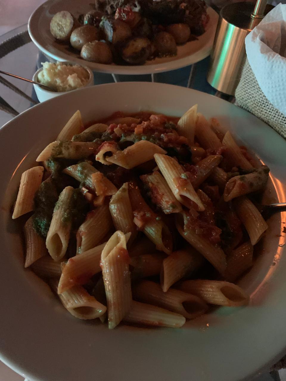 Platos principales: suprema a la plancha con cremoso de zanahorias asadas, arroz cremoso de kabutia asada y crocante de sardo, penne rigate con pomodoro y pesto, milanesa de pollo napolitana con guarnición a elección, hamburguesa de la casa, bife de chorizo con papas asadas y criolla fresca, flautón de jamón crudo, queso y tomate, ciabatta de mortadela, mostaza dijon, pickle de pepino, tomate y rúcula, baguetín de jamón natural y queso, ensalada césar con pollo o ensalada de espinacas.